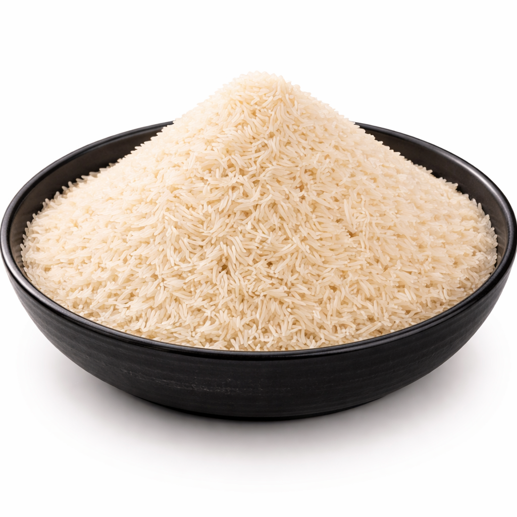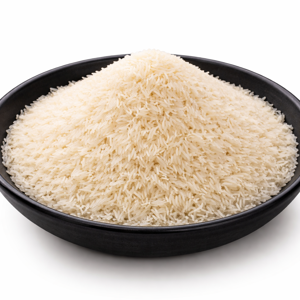 1509 Basmati Rice offers long grains with excellent cooking quality. It becomes soft and fluffy after cooking, making it ideal for everyday meals and restaurant dishes.